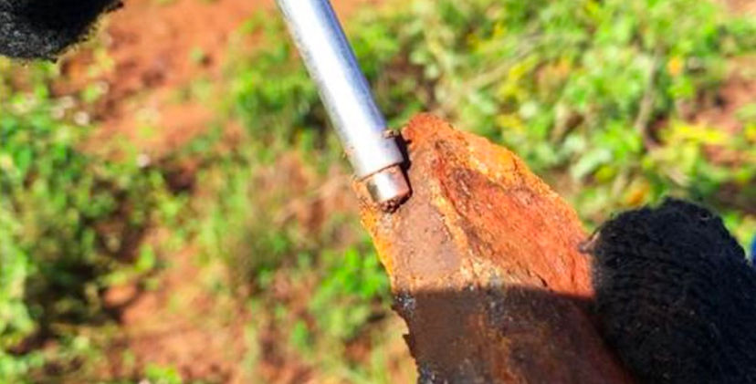 During geological reconnaissance, the predominance of soils grading from yellowish silt to intensely red clay suggested a favorable environment for the hosting of ionic clays (IC). Additionally, the presence of magnetite and heavy minerals in hydraulic flow channels supports the chemical and weathering disaggregation of granulite minerals and their remobilization in low-energy environments.