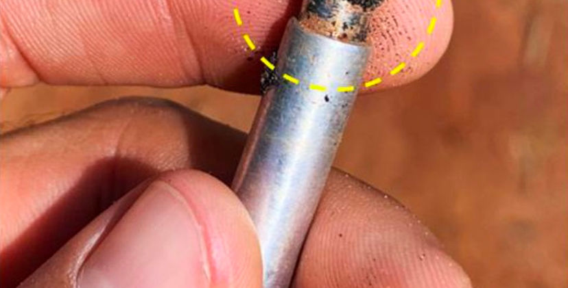 Figure 7. Heavy magnetic minerals in drainage channels on shallow soil