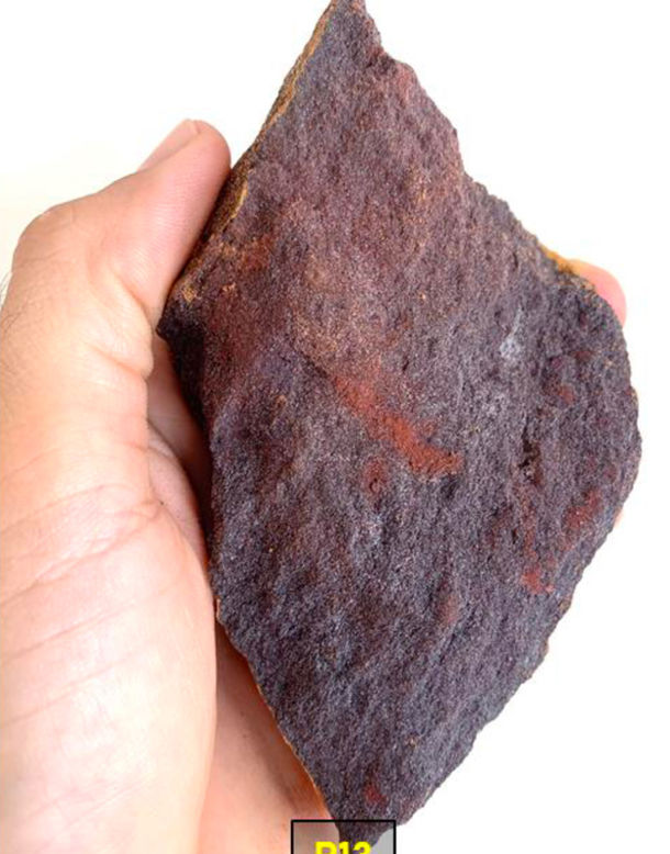 Fig 8. Example of a high-quality manganese ore sample obtained from the visited area, but still with the presence of impurities such as silica (yellowish colors).